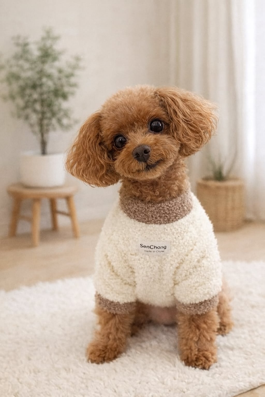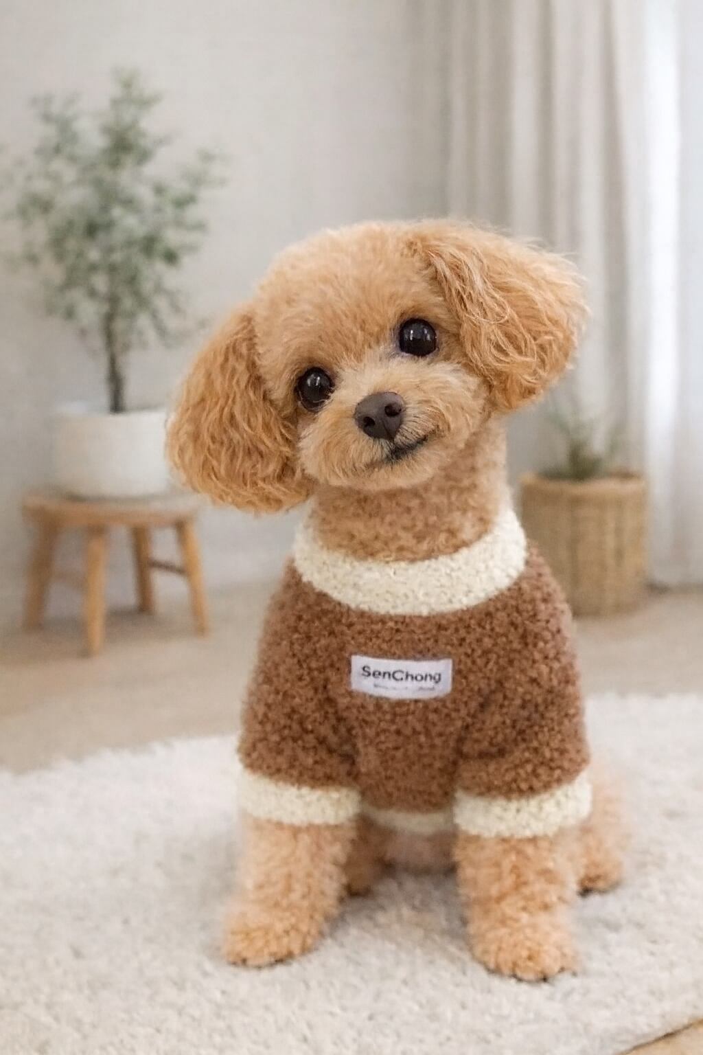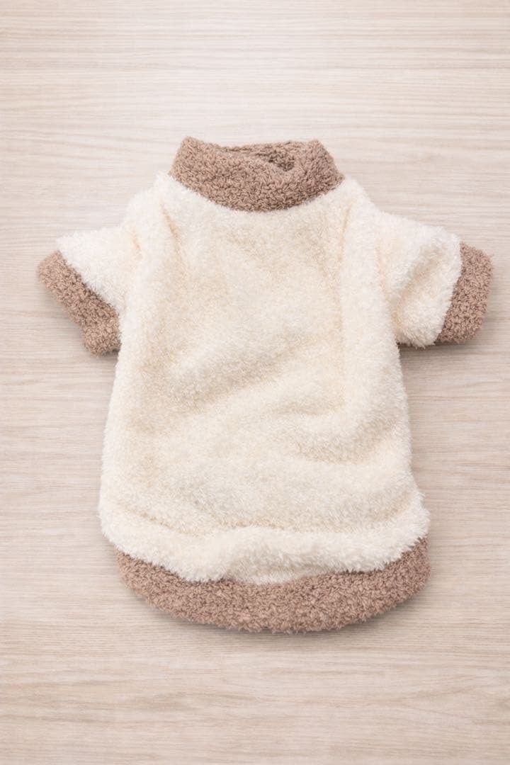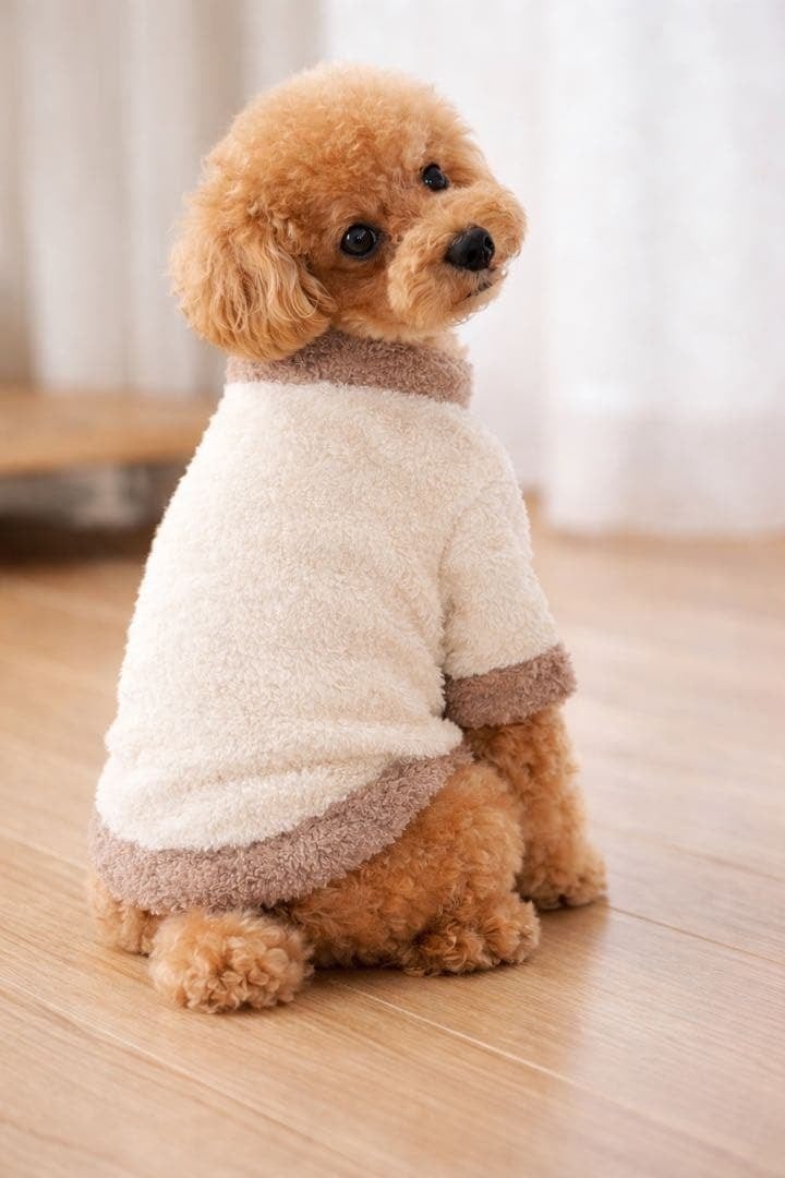 軽くて着やすい もこもこ素材のボアトレーナーです。軽くて暖かく、室内でもお散歩でも快適に着用できます。伸縮性があるため動きやすく、小型犬に最適なデザインです。シンプル仕様で、どんな犬種にも合わせやすい着回しの良いアイテムです。